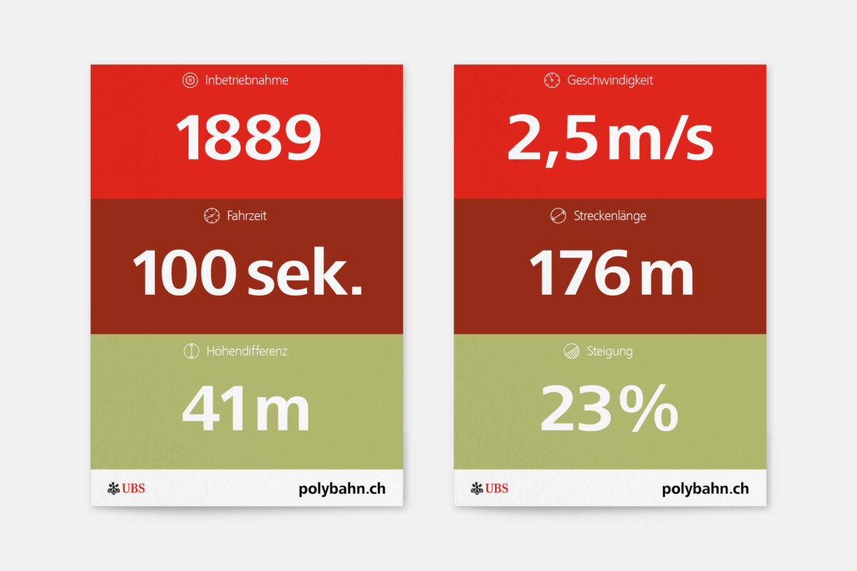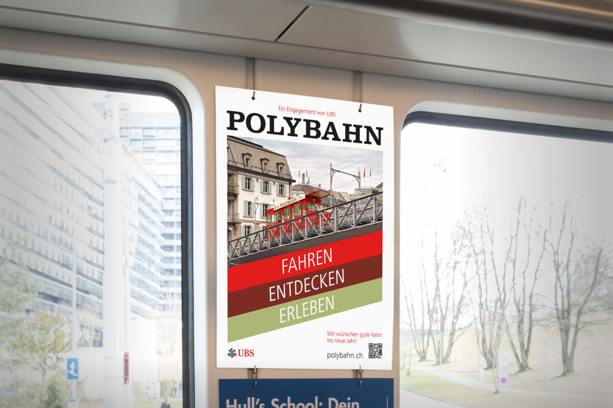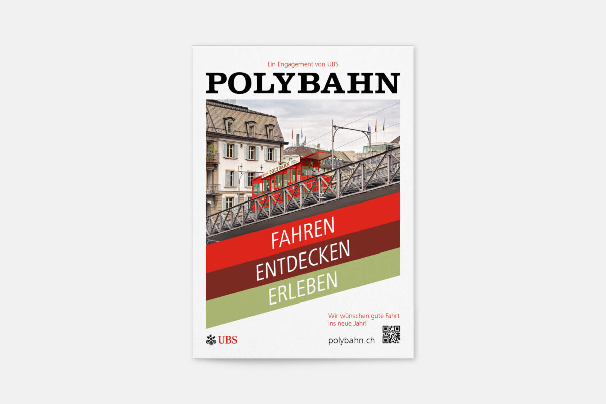 Während einer Grundsanierung der Bahn haben wir die Beschriftung der Kabinen und die Signaletik an den Stationen behutsam aufgefrischt, immer nahe am historischen Original. Aktuell realisieren wir den Geschäftsbericht der UBS Polybahn AG und begleiten die historische Bahn auf dem Weg zu mehr Bekanntheit in den sozialen Medien.