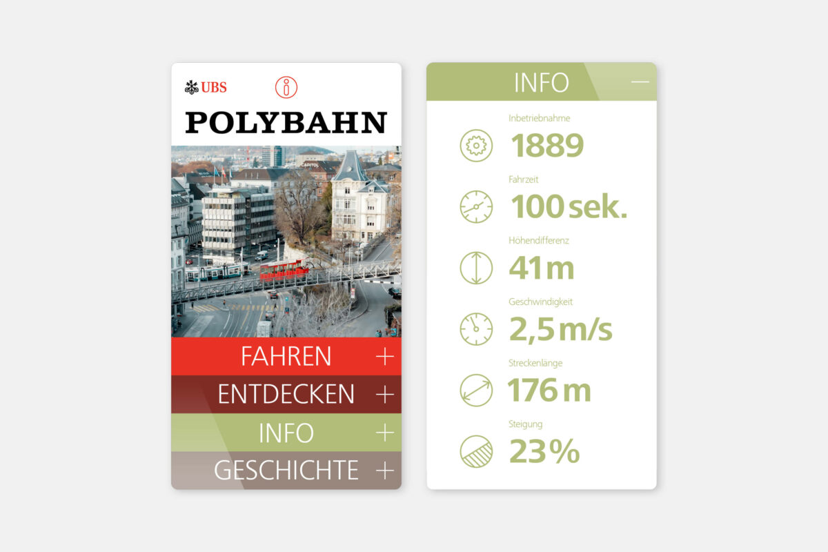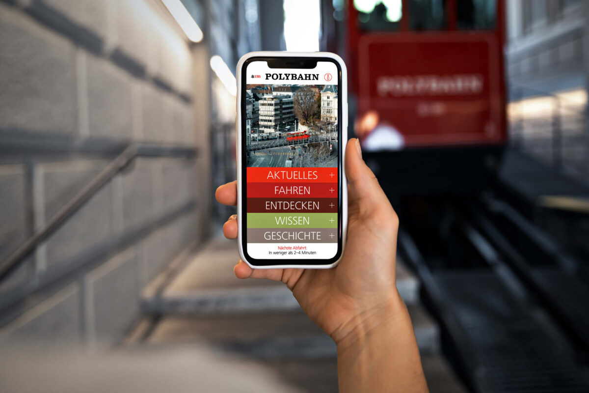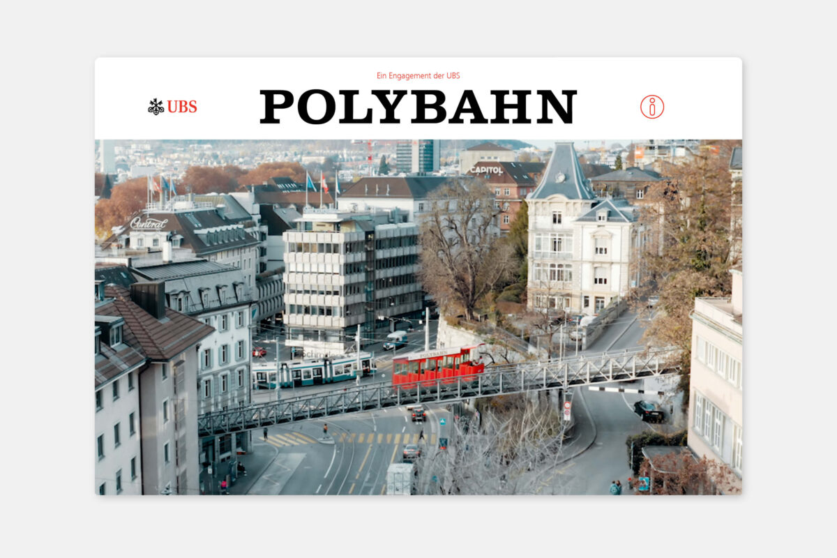 Seit 1889 fährt in Zürich die ikonische rote Standseilbahn Studierende, Touristen und Einwohner:innen in 100 Sekunden vom Central auf die Polyterrasse und zurück. Gemeinsam mit Caspar Eberhard haben wir für die Polybahn eine eigene Website entwickelt, mit Informationen zur nächsten Tal- und Bergfahrt und auch Zahlen und Fakten zum kleinsten Mitglied des Zürcher VerkehrsverbundsZürcher Verkehrsverbund.