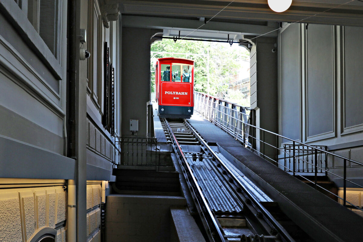 Die UBS Polybahn, liebevoll auch Polybähnli genannt, transportiert jedes Jahr rund zwei Millionen Personen vom Central bis zur Polyterrasse und retour.